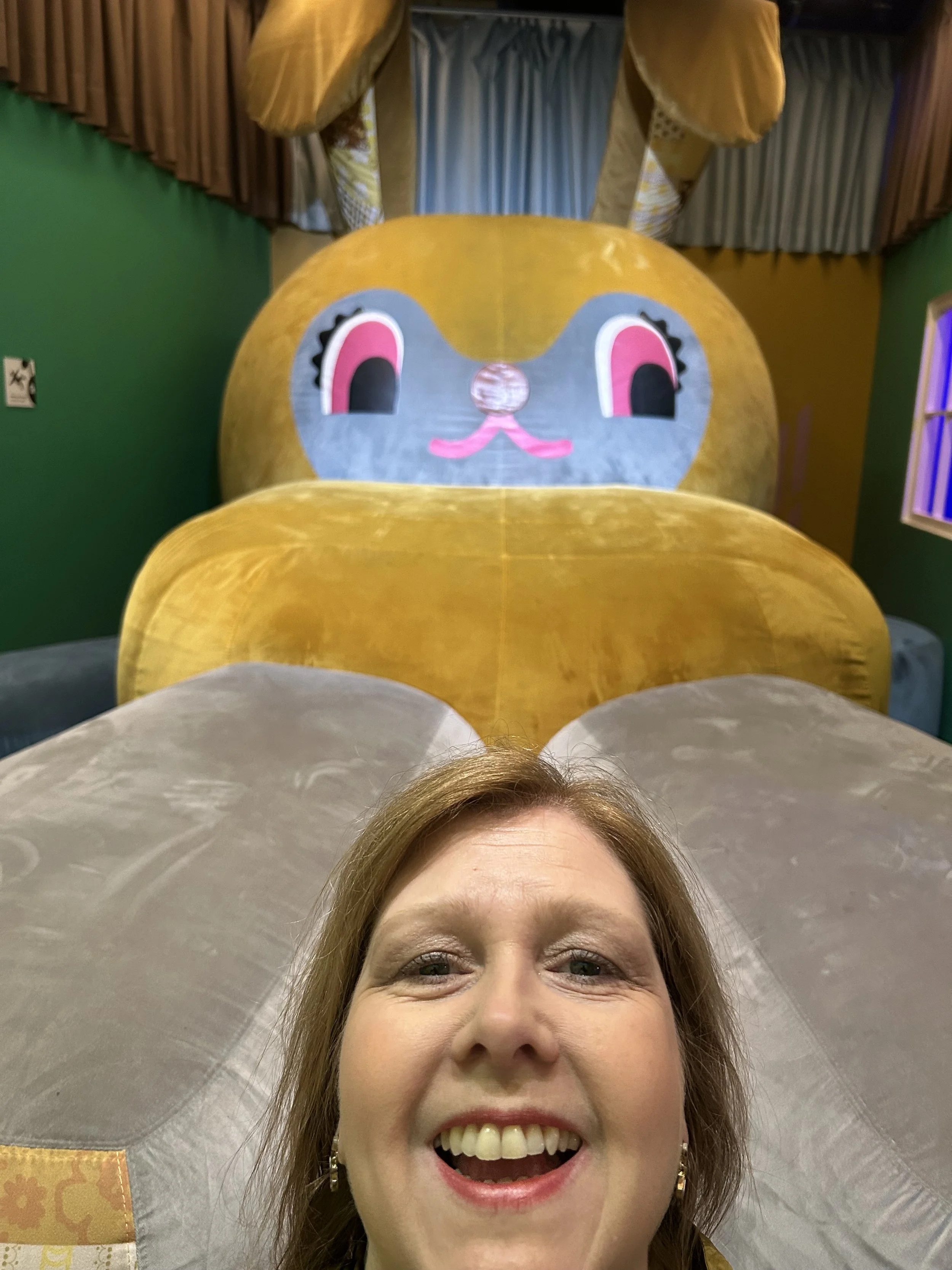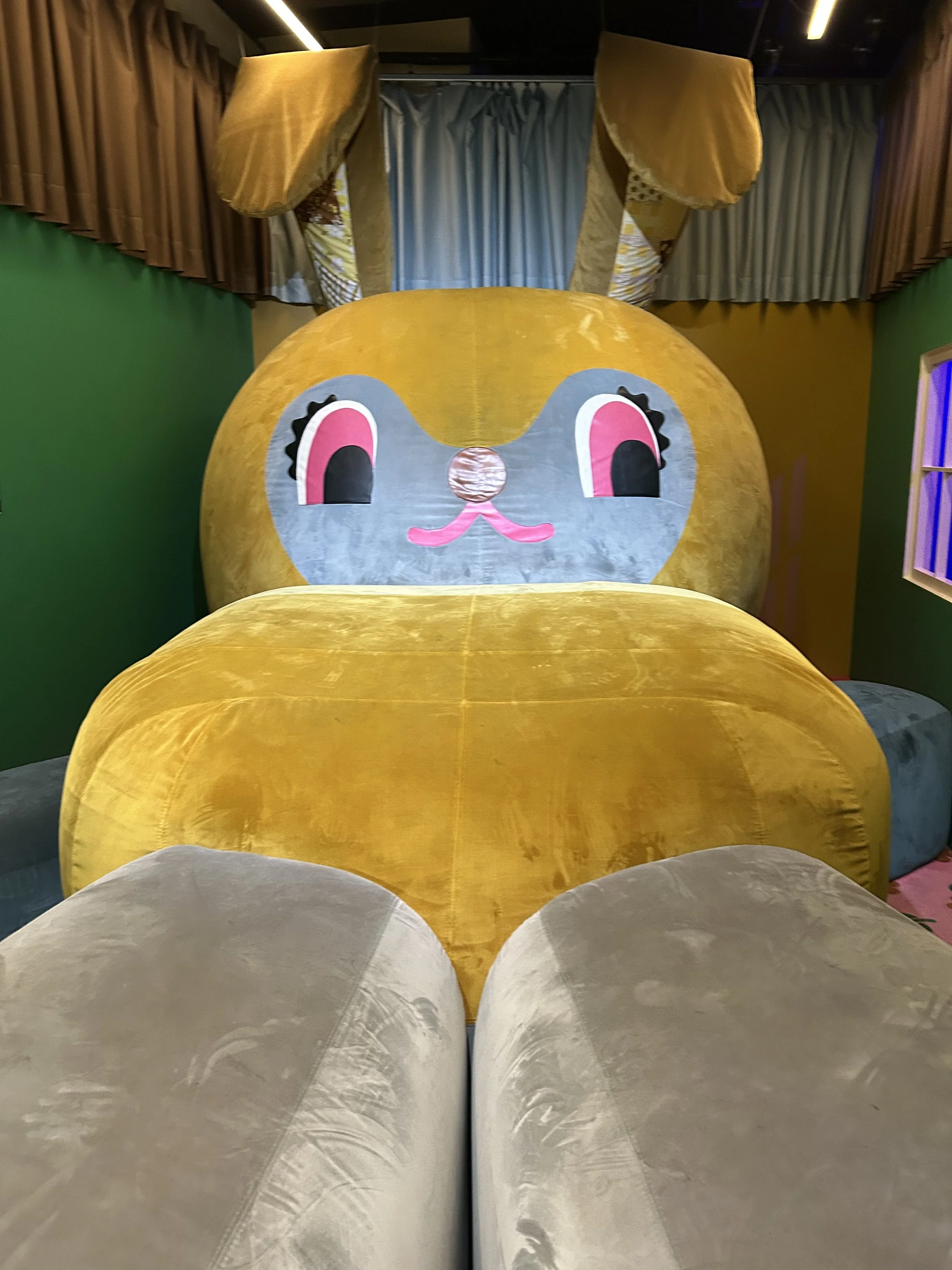 Deb’s loved this however I was more taken by the second exhibit a celebration of all things joy. This was delightful and included amongst other things a joy generator, a full mock up of a video store from the late 80,s early 90,s and a big fluffy rabbit.