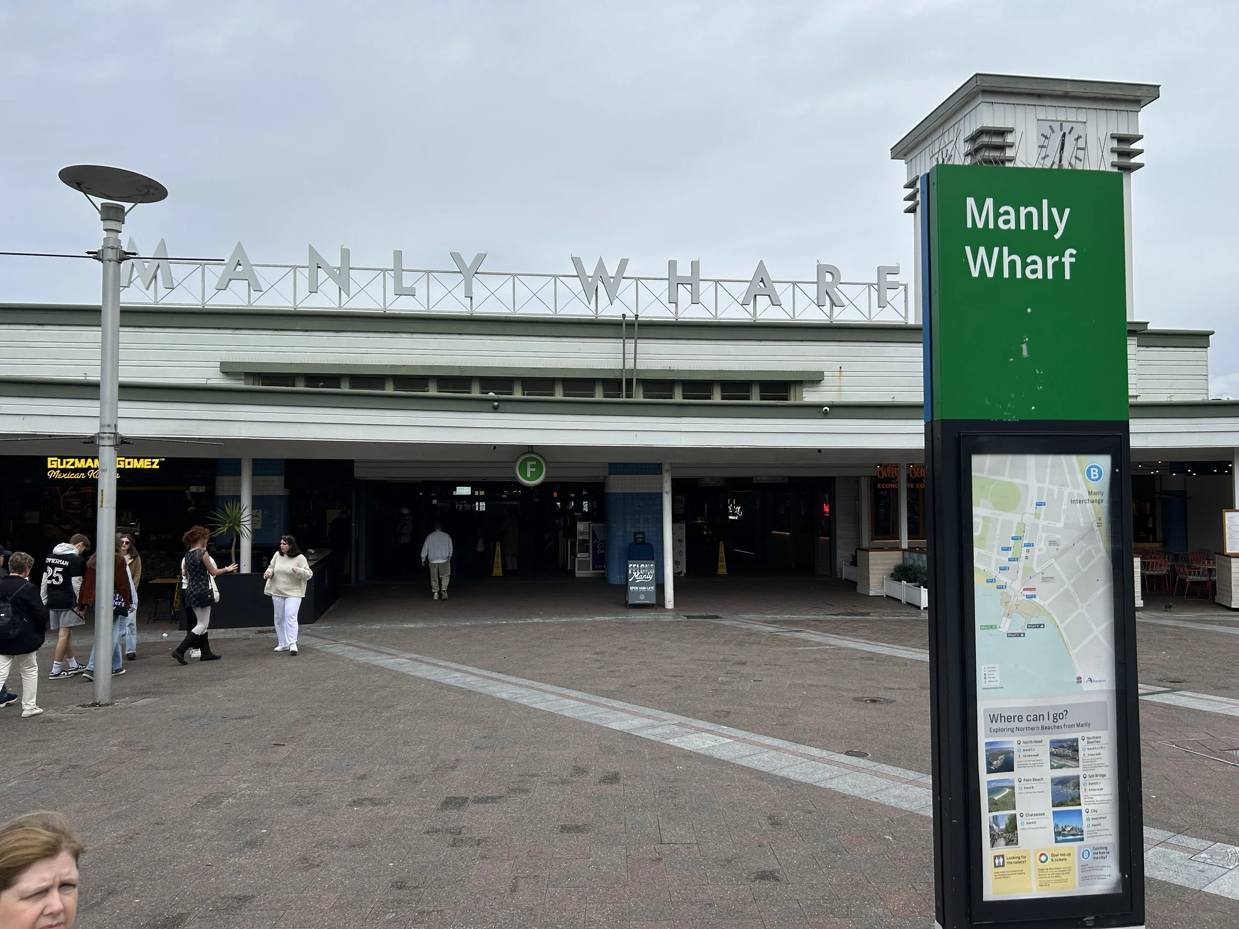 The weather report on Friday had told us that the weekend weather for Sydney was going to be grim, in fact they had already declared the weekend a washout. Saturday in the Blue Mountains managed to far exceed our expectations with blue skies all around but Sunday morning was a far more dour affair with grey skies. On the plus side it was due to stop raining between 10am and 4pm so armed with this fact we made our way to circular Quay and the fast ferry over to Manly beach.