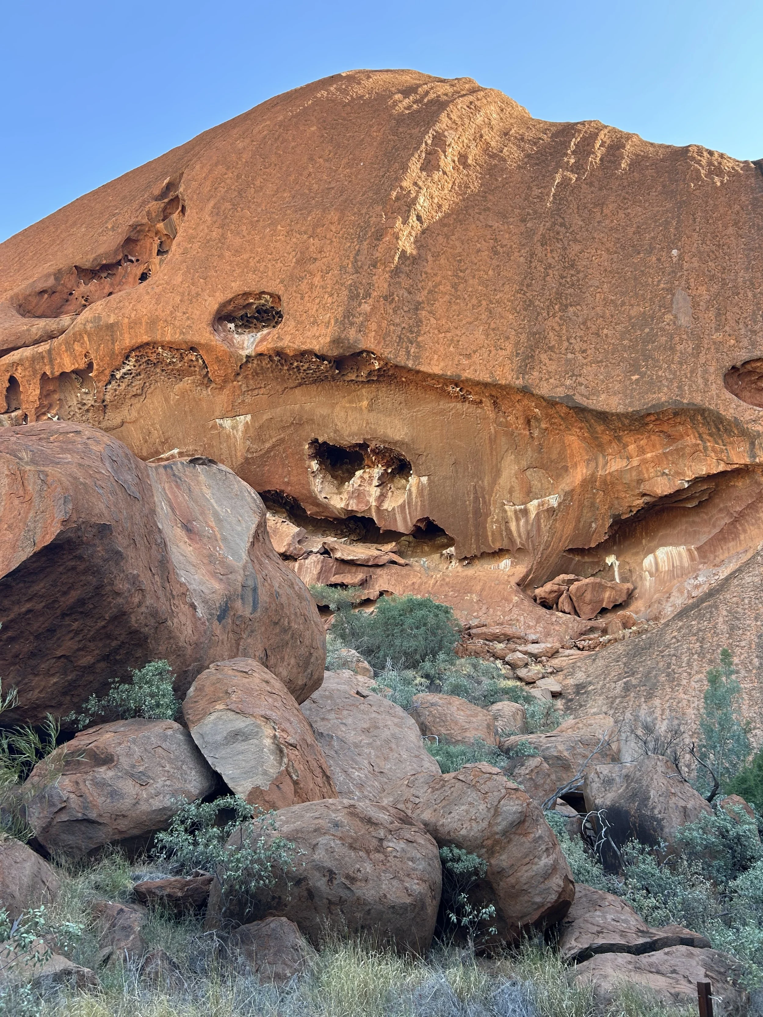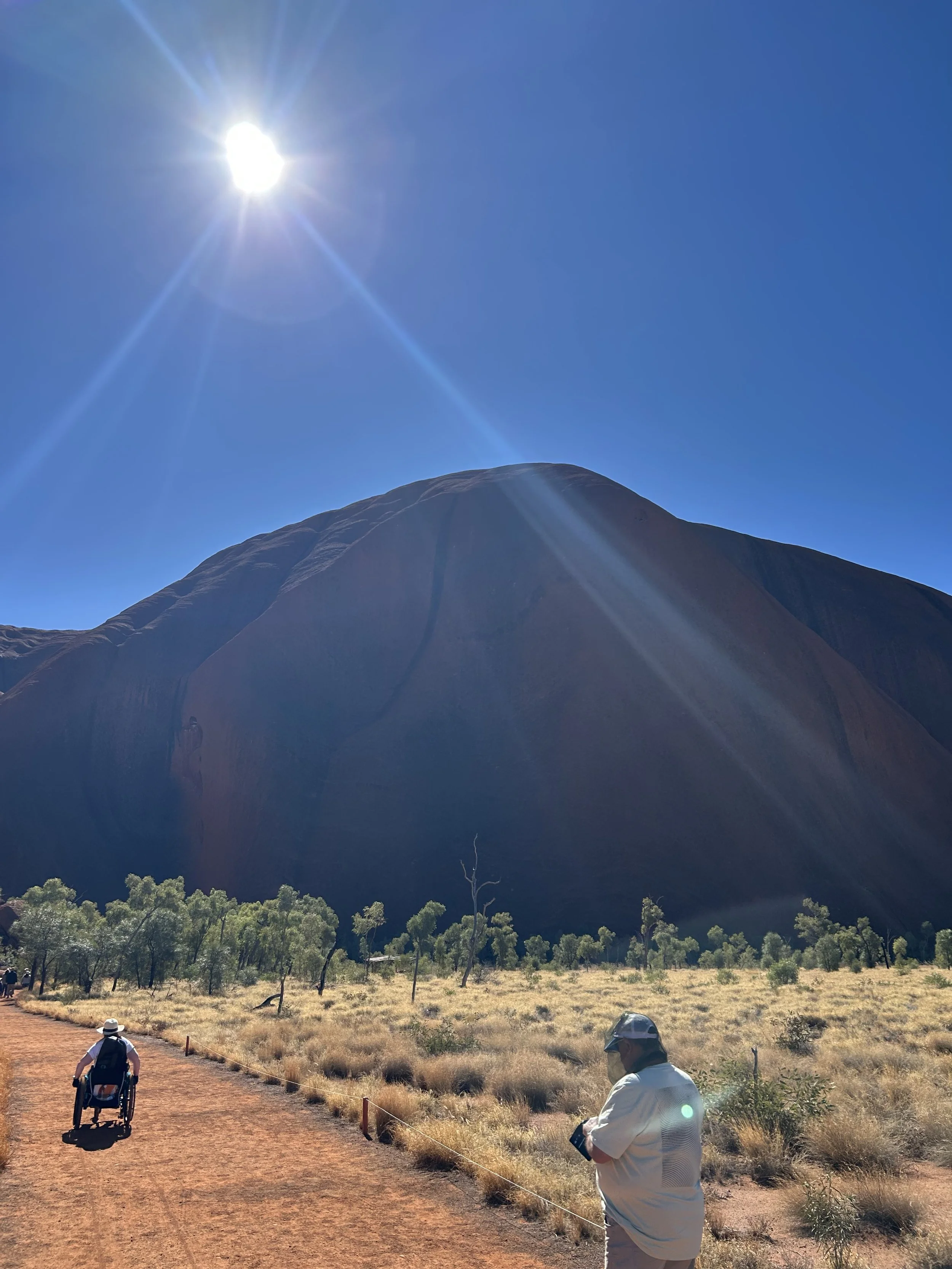 We were bussed back to the hotel and the next thing was to book our trip to walk around Uluru. We had bought a special attachment for Deb’s wheelchair, called a freewheel, to help Deb in the sand and apart from a couple of really tricky places we were able to get around quite well. One word of warning for anyone that does go is the flies, they are small, plentiful and very annoying especially during the day. We had a spray that didn’t seem to deter them in the slightest, some people wisely invested in nets to go over their faces but I think the flies just saw this as a challenge and one inevitably they would win.